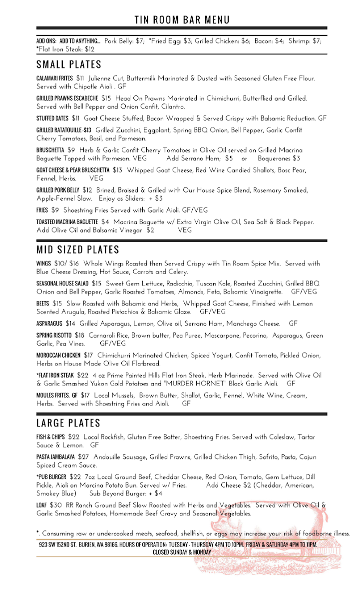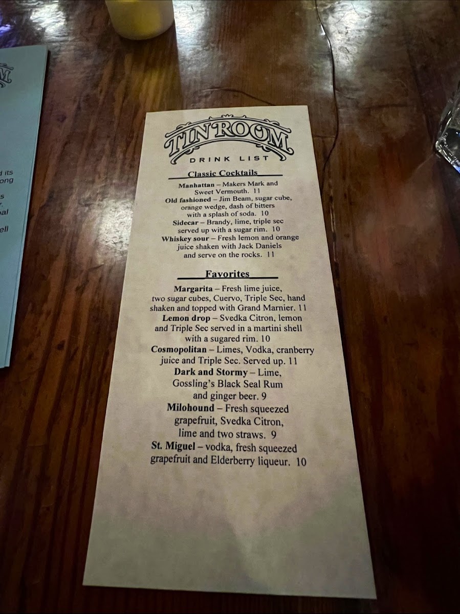 Tin Room Bar & Restaurant Menu (Update 2025)